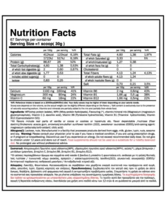 -85% απομονωμένη πρωτεΐνη ορού γάλακτος (WPI 95%), ένας καθαρός τύπος πρωτεΐνης που υποβάλλεται σε πολλαπλά επίπεδα φιλτραρίσματος για την απομάκρυνση μη πρωτεϊνικών συστατικών όπως το λίπος, η χοληστερόλη και η λακτόζη, με αποτέλεσμα ένα 95% πραγματικό πρωτεϊνικό συστατικό.